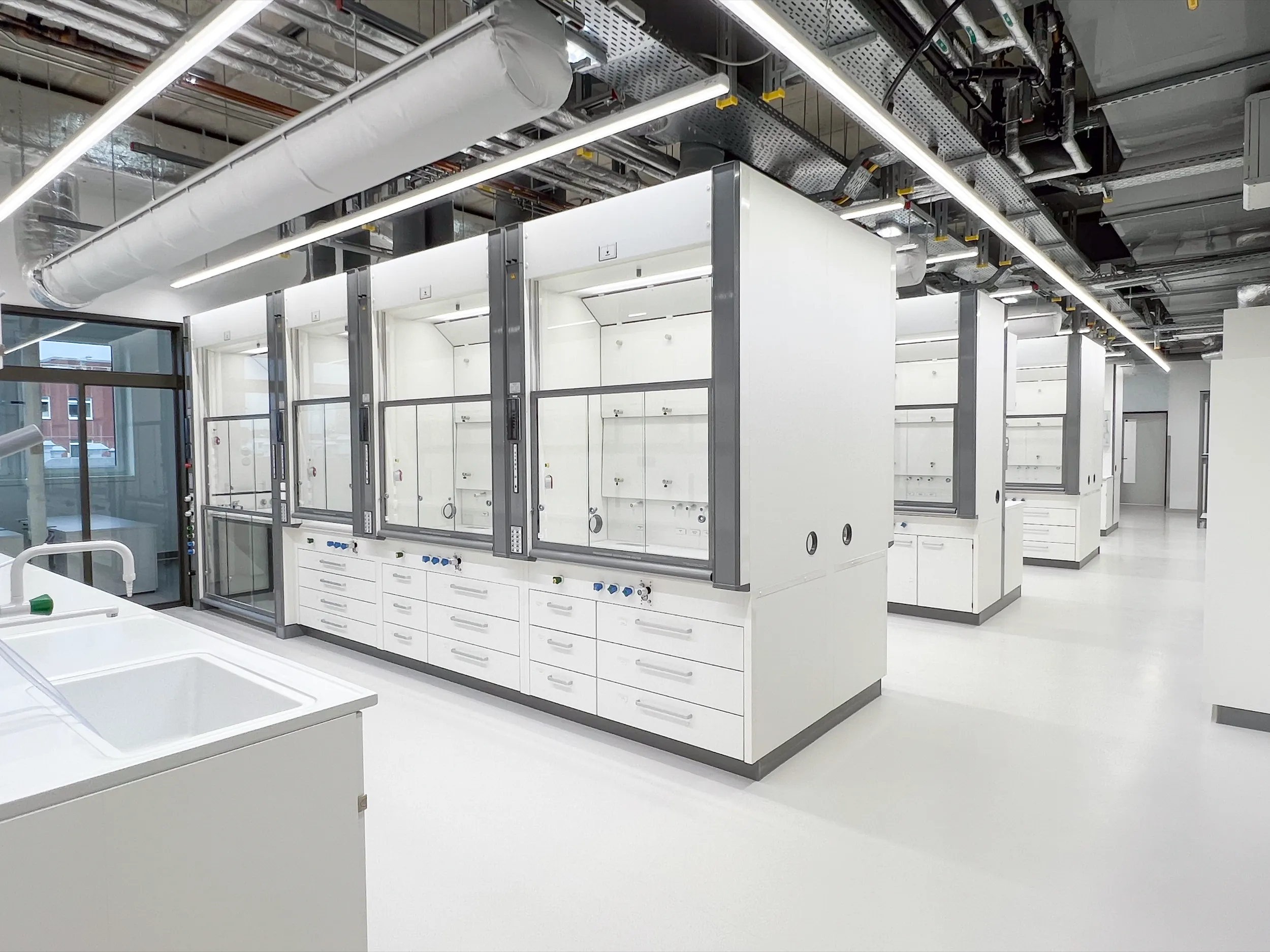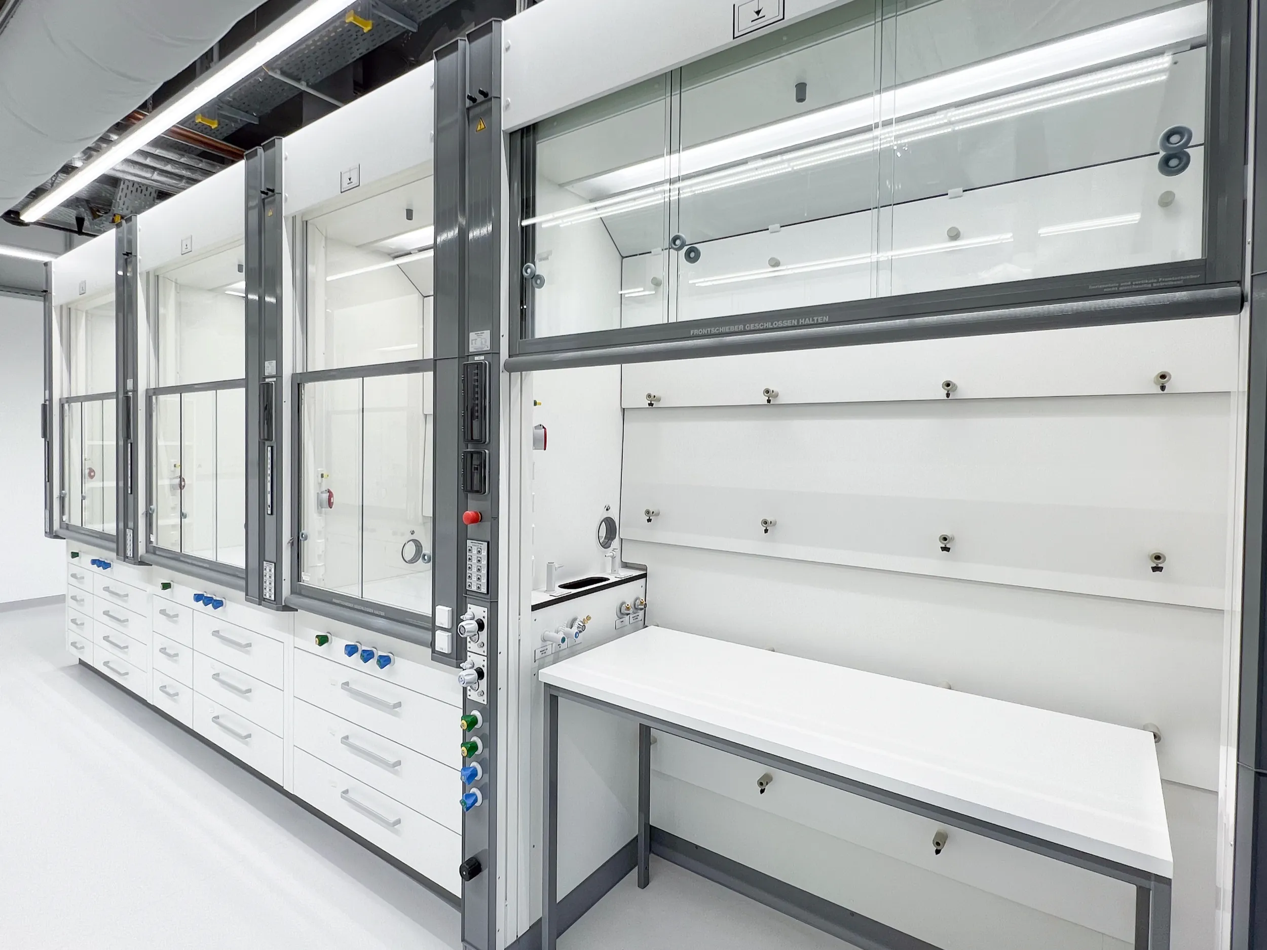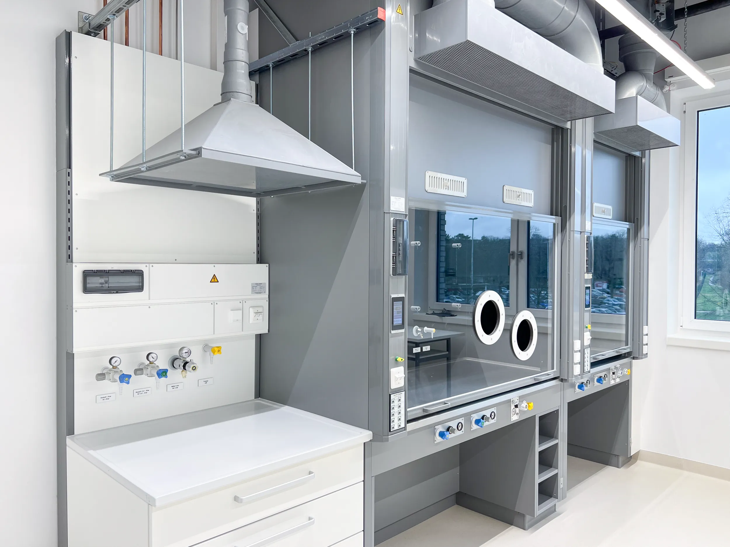 • Tisch- und begehbare Abzüge in explosionsgeschützter Ausführung mit hoher Medienbestückung