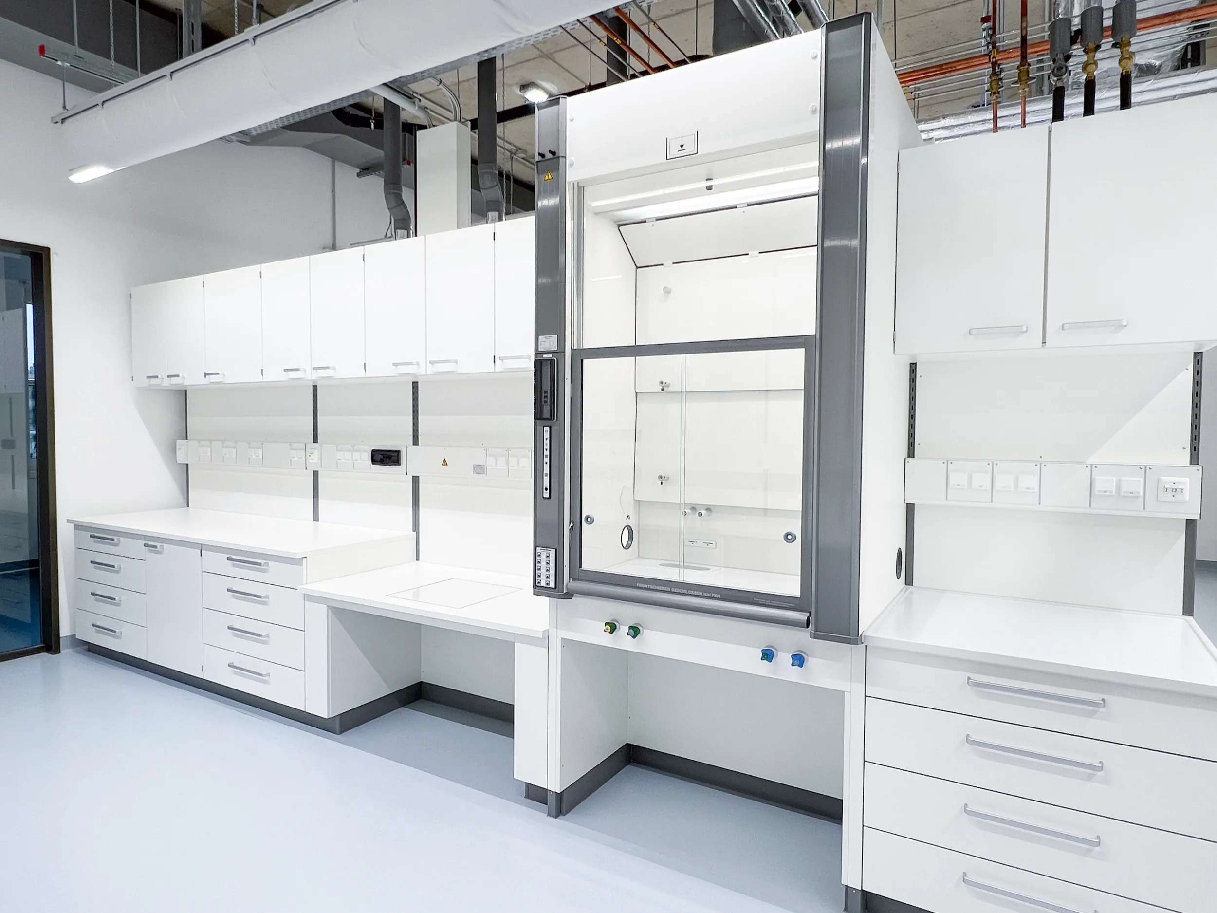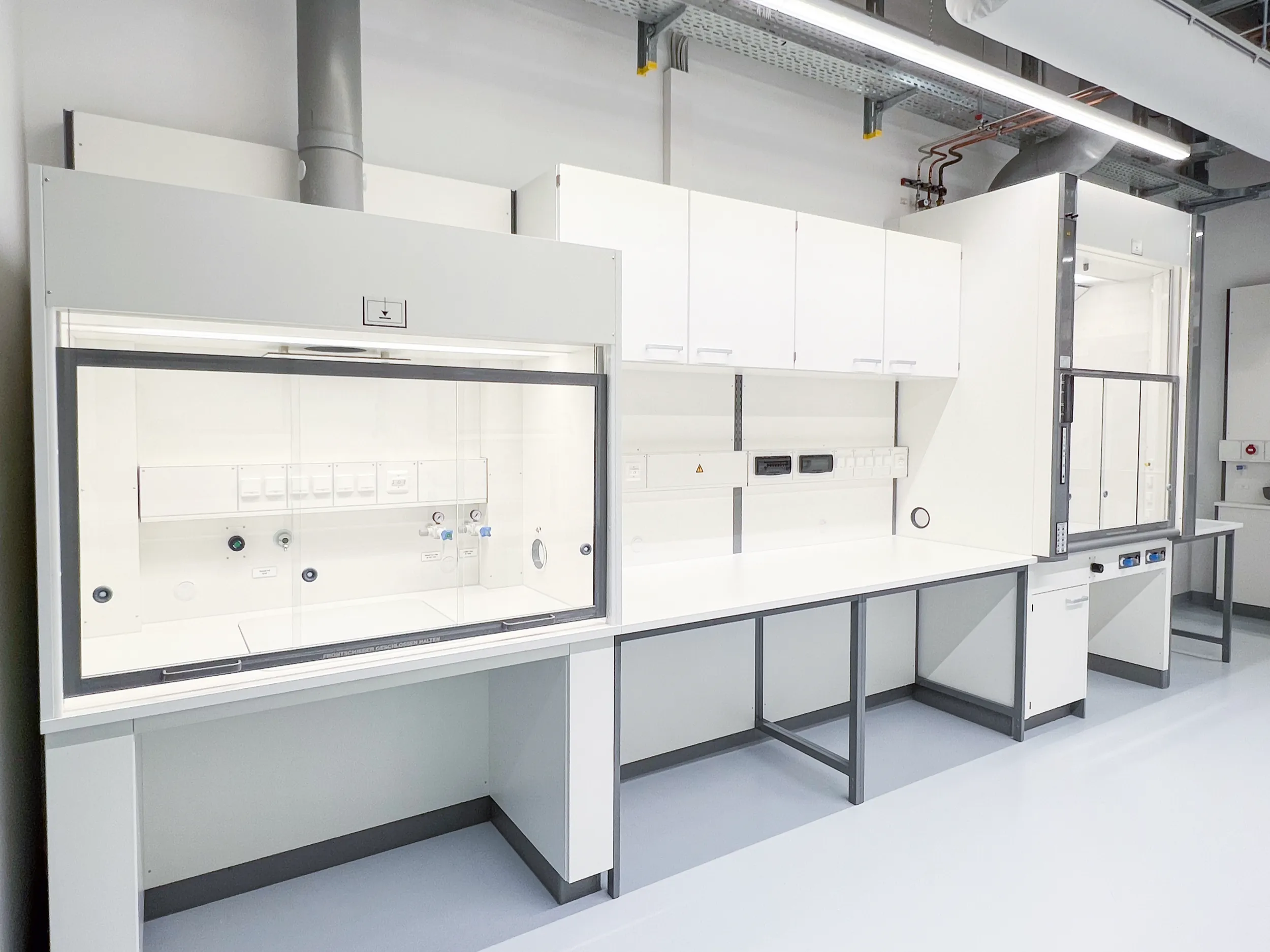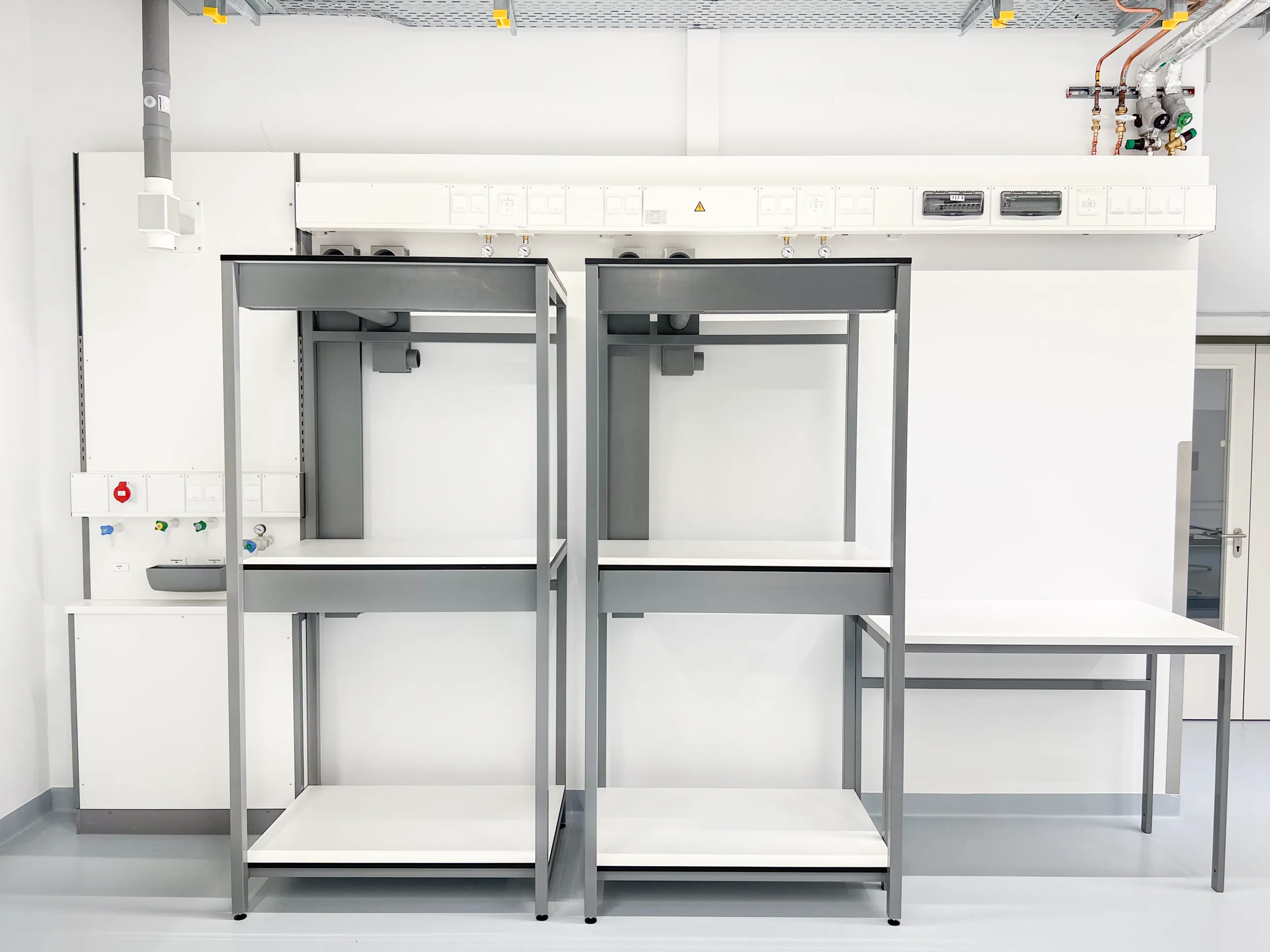 • Tisch- und begehbare Abzüge in explosionsgeschützter Ausführung mit hoher Medienbestückung